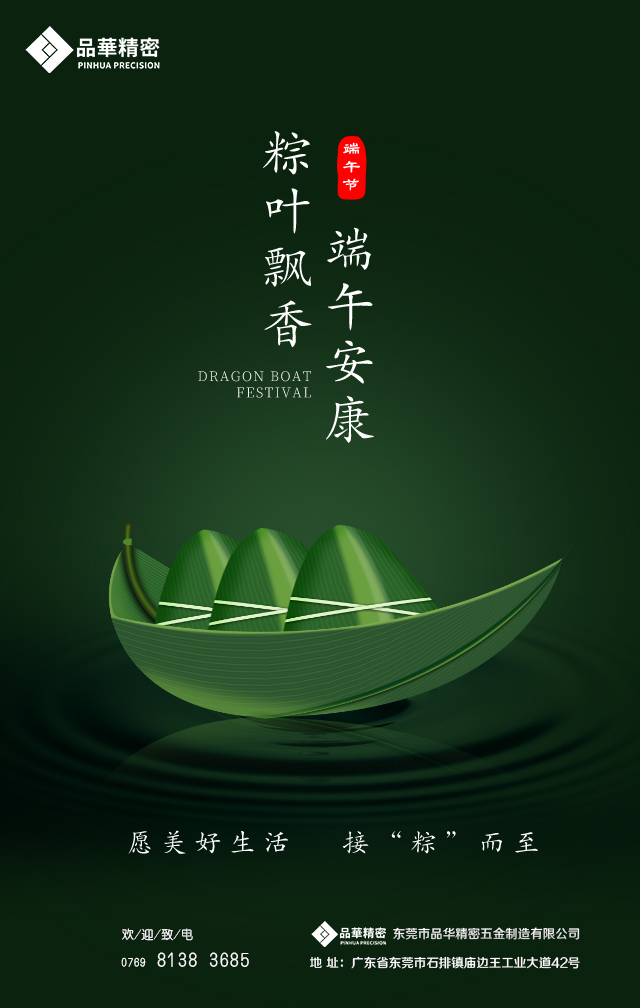 端午與春節、清明、中秋并稱為中國四大傳統節日,“7月底”這句話最原始展現于西晉的《風土記》: ”仲夏端午謂五月五日也,俗重此日也,與夏至同。”后因戰國時期的楚國詩人屈原在五月五日跳汨羅江自盡,人們亦將端午節作為紀念屈原的節日。在濃濃的粽香飄來之際,品華精密全體員工祝各位新老客戶事業順暢,萬事如意,端午安康!